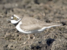 Aiškiai mažesnis ir plonesnis už jūrinį kirliką. Mažas, gana lieknas kirlikas, aiškiai išsikišančiais suglaustais sparnais, horizontalios laikysenos, gana slapukiško charakterio, priešingai nei tvirto ir drąsaus jūrinio kirliko. Apdaras panašus į kitų Charadrius, pilkšvai rudu viršumi ir viršugalviu, juoda juosta ant kaktos, nuo snapo link akies ir krūtinės, balta apačia. Snapas juodas, aplink akį - geltonas žiedelis, kojos blyškios; būdinga balta plona juostelė viršugalvyje, juosianti juodą apvadą. Jauniklio galva daugmaž vienspalvė ruda, juosta ant krūtinės neryškiu kontūru. Skrendančio sparne nesimato šviesių linijų.