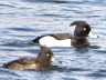 Baltai juodas suaugęs ♂ nesupainiojamas: žilosios anties ♂ yra sidabro pilkumo nugara ir neturi kuodo. ♀ ir jaunikliai gali būti painiojami su žilosios anties ♀ ir jaunikliais, kurie atrodo sunkesne galva su didesniu šviesiu plotu aplink didesnį snapą, blyškesniu viršumi ir neturi kuodo. Rudės ♀ atskiriama iš snapo ir kontrastingo balto pauodegio.
