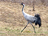 Penktadaliu didesnė už pilkąjį garnį. Didelis sausumos paukštis, aštriu snapu, ilgu kaklu (skrenda jį ištiesęs), ilgomis kojomis, elegantiška, puošnia, pūkais papuošta uodega. Apdaras pilkas, tamsesne galva ir viršutine kaklo dalimi, viršugalvis papuoštas raudonai, ties akimi eina balta linija kaklu žemyn; juodos plasnojamosios plunksnos kontrastuoja su likusia sparnų dalimi. Jauniklių galva raudonai ruda, neišpuošta kaip suaugusių. Plasnoja staigiai pakeldama sparnus ir sklęsdama.