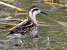 Veisimosi apdaru suaugęs iš arti nesupainiojamas, bet žiemos apdaru ir jaunikliai painiojami su kitais plaukikais; jauniklių apdaro raštas skrendant primena mažus tamsius Calidris paukščius. Mažiausias ir liekniausias iš plaukikų, smailu snapu, plonu kaklu, galva, mažiau statinaitės formos kūnu, gana siaurais sparnais. Ilgomis distancijomis skrenda panašiai kaip Calidris, nors mažesne galva, santykinai platesne krūtine, aiškiai ilgesne uodega siluetas skiriasi; trumpais atstumais skraido padrikai ar nervingai, staigiai šokdamas iš vandens, paskrisdamas virš paviršiaus ir vėl staigiai leisdamasis. Plaukia panašiai, kaip nendrinė vištelė. Plūdrus, dažniausiai laiko kaklą ištiesęs į viršų, kūno linija žemėja nuo kaklo link uodegos, uodegą šiek tiek iškelia. Maitindamasis vandenyje sukasi ir lesioja vienoje vietoje.