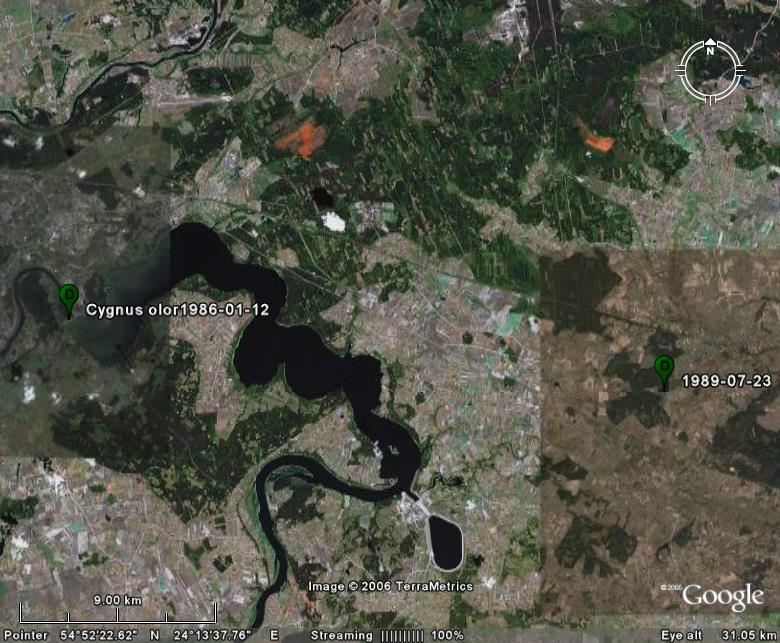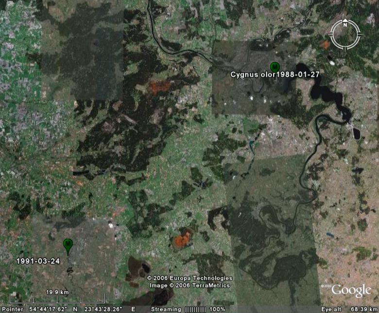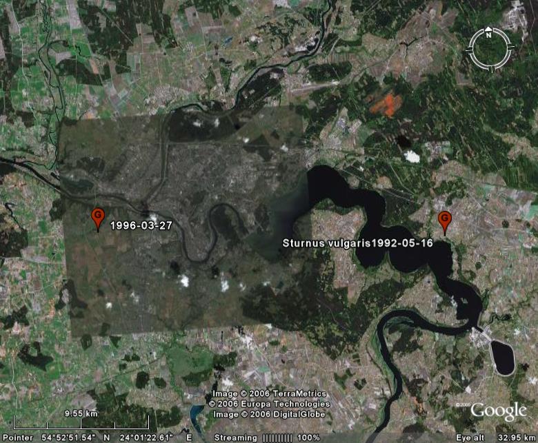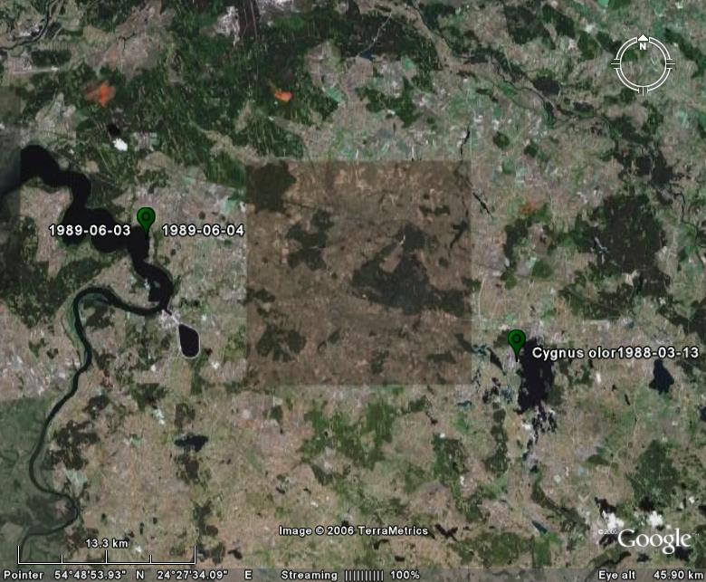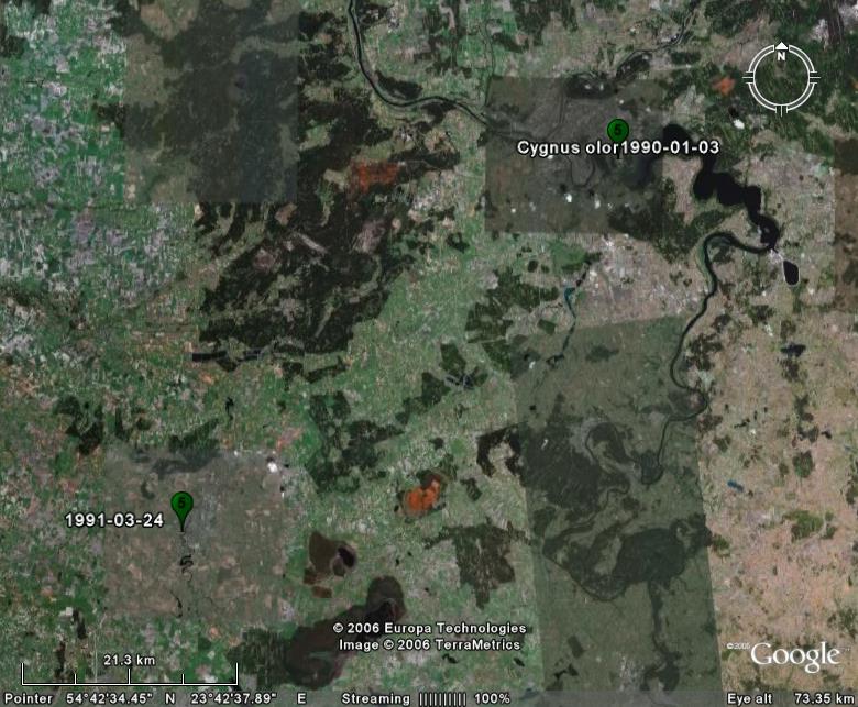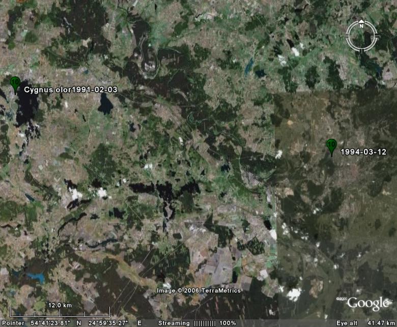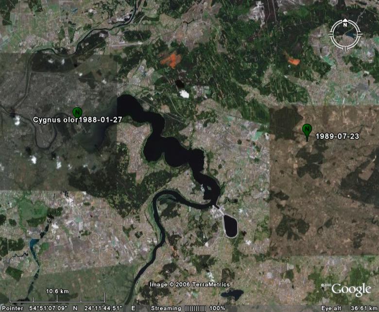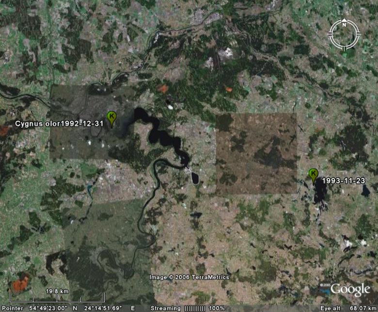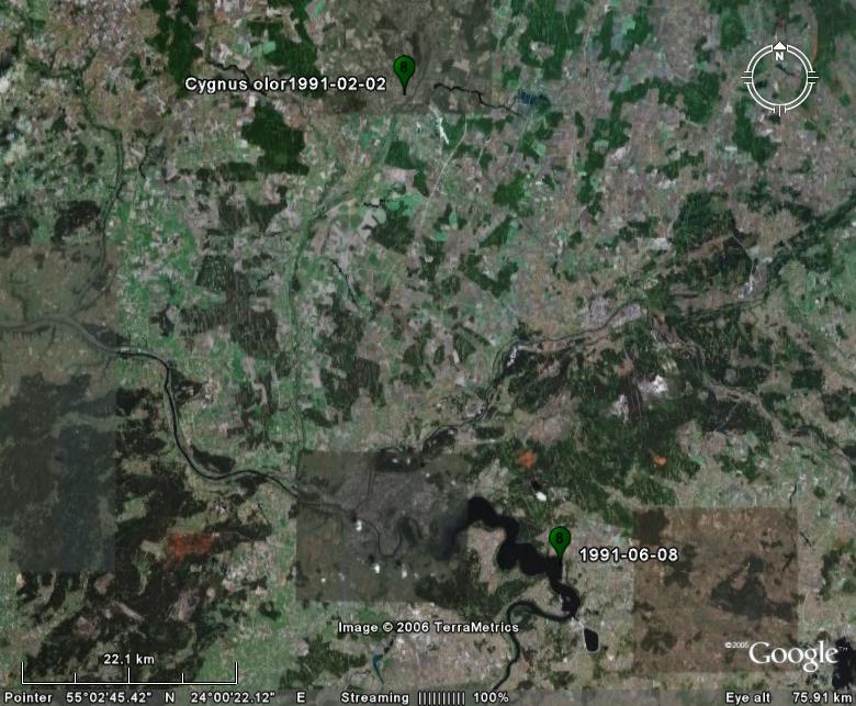 | Cygnus olor | 9956 | 1991 03 24 | Rumšiškės, Kaišiadorys | <1990 | 1993 02 04 | Marijampolė | Lietuva | Gyvas | 683 | 66 | |