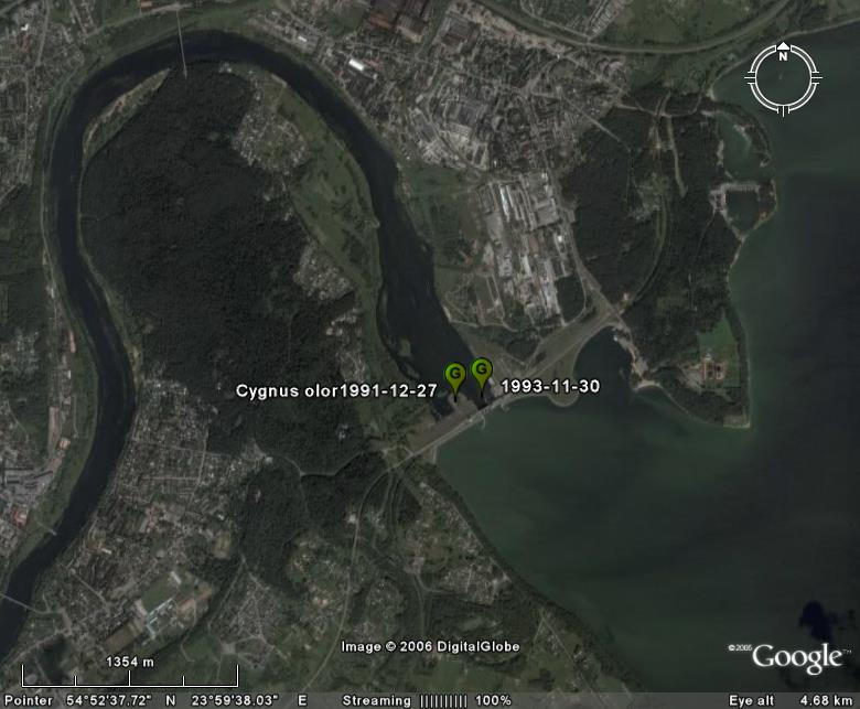 | Cygnus olor | 9153 | 1991 01 15 | Rumšiškės, Kaišiadorys | F | 1990 | 1992 01 13 | Kaunas | Lietuva | Gyvas | 363 | 21 |