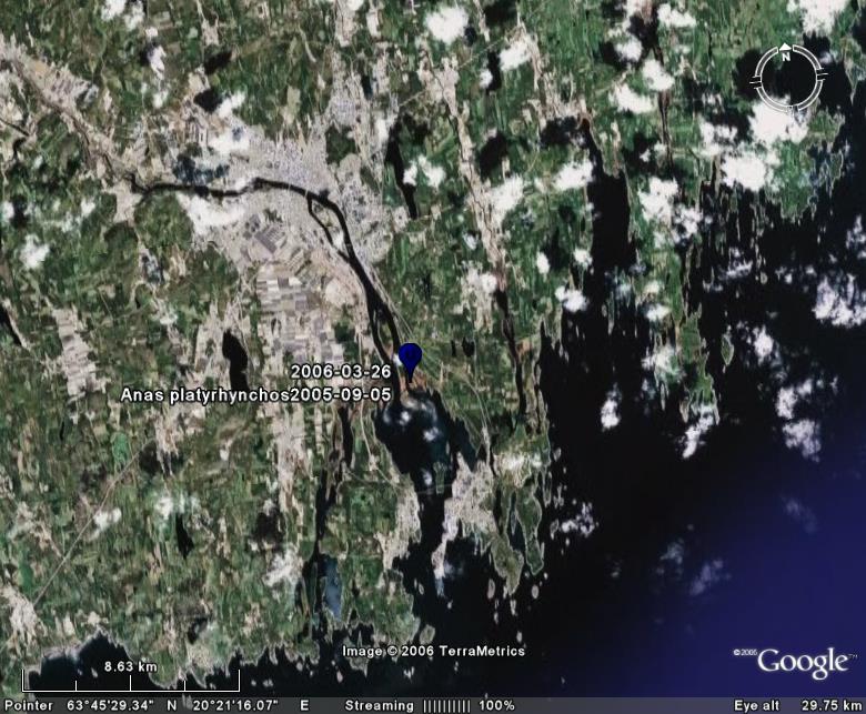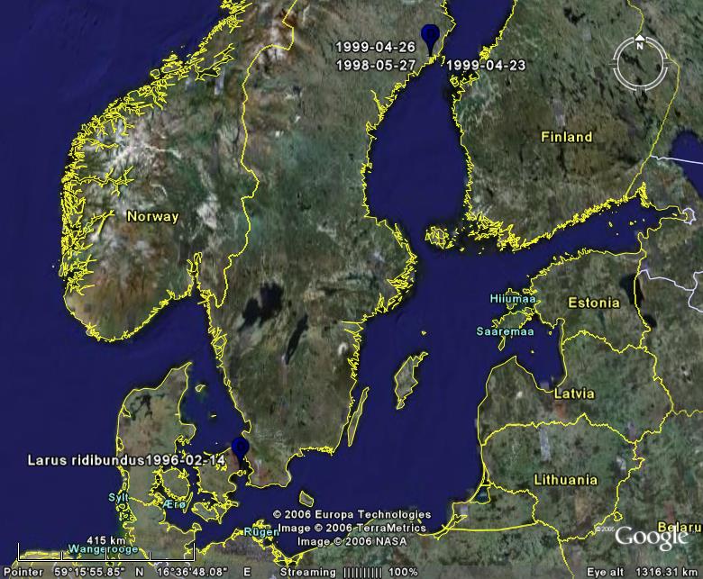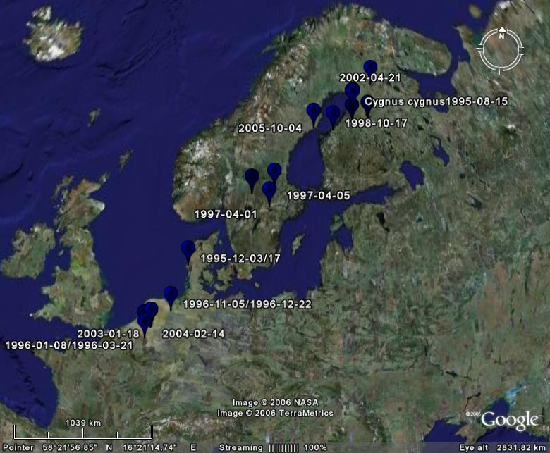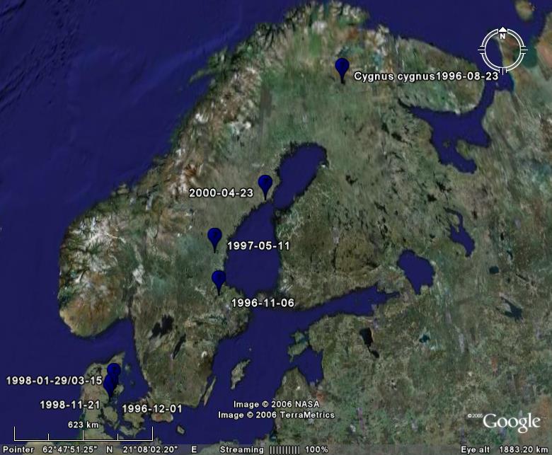 | 2005 02 26 | Lasarettsdammen, Umeå, Västerboten | Švedija | Gyvas | 1117 | < 10 | ||||||