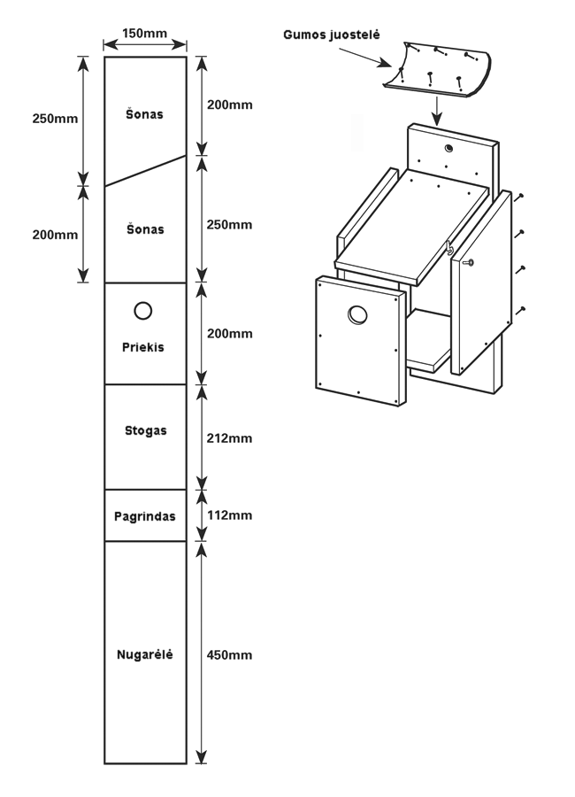 | Skirta paukščiui | Matmenys (mm) | Landos tipas |