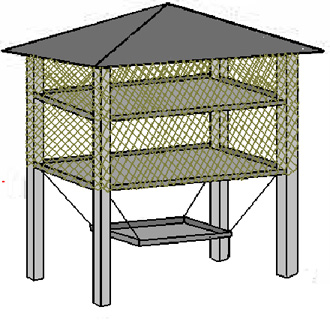 Jei vietoje, kurioje ruošiatės lesinti paukščius, yra daugiau laisvos erdvės, galite įrengti didesnę stacionarią lesyklą. Tačiau, norint įengti tokio tipo lesyklą, reikia turėti staliaus įgūdžių, o ir išlaidos jai įrengti yra ženkliai didesnės.Vidutinio dydžio stacionari lesykla yra maždaug 2 metrų aukščio, pagrindas - maždaug 2 x 2 metrų, o savo išvaizda ji primena ant polių pakeltą voljerą (6 pav.).