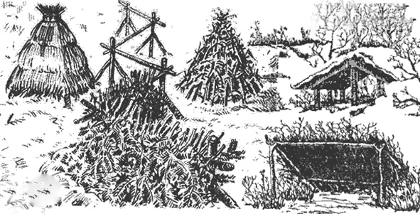 Kiek sudėtingiau įrengti, bet lengviau prižiūrėti, iš šiaudų, nendrių, eglišakių ar pušies šakų pastatytas palapines ir užuovėjas (7 pav.).