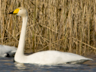 Visa balta, didelė gulbė plokščiu viršugalviu, ilgu, tiesiu, į viršų iškeltu kaklu. Geltonas snapas juodu galu; geltona zona įsiterpia pleištu nuo pagrindo link galo; juoda spalva prasideda dažniausiai žemiau šnervių.
